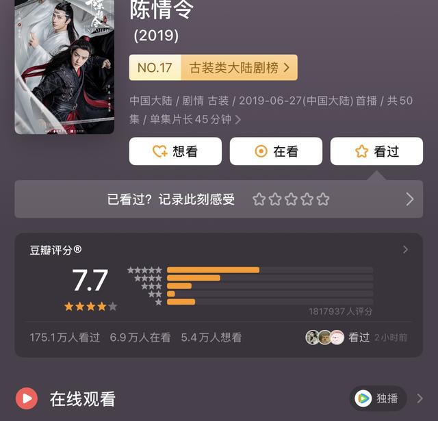 然而,跟着剧集的播出,该剧的播放总量达到了61.6亿次,豆瓣的评分也逆袭至7.7分。