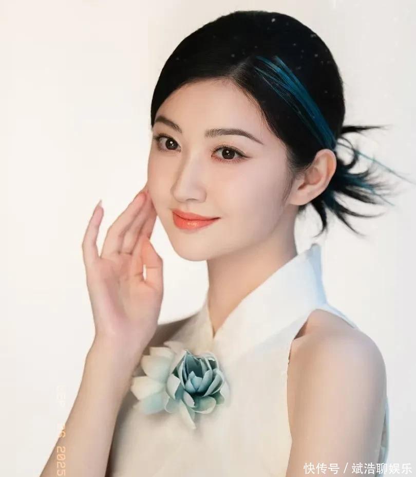 你看这一张,白色旗袍多斯文,但那几缕蓝发挑染绝绝子啊!
