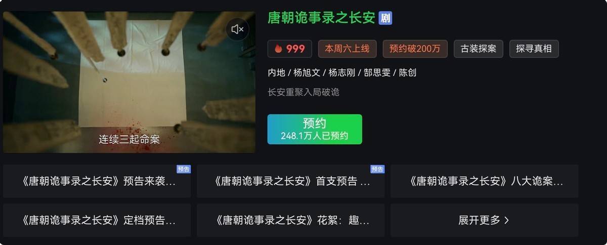 提前20天预热,预约量破三百万,《唐诡3》的底气显然不仅仅噱头。