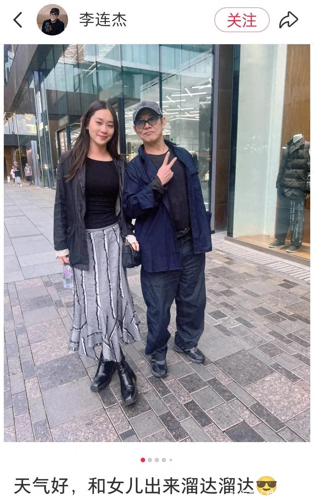 李连杰和男儿合影的每一张相片齐是面带含笑,身子很当然的向男儿那也微倾,尽是对男儿的可爱。