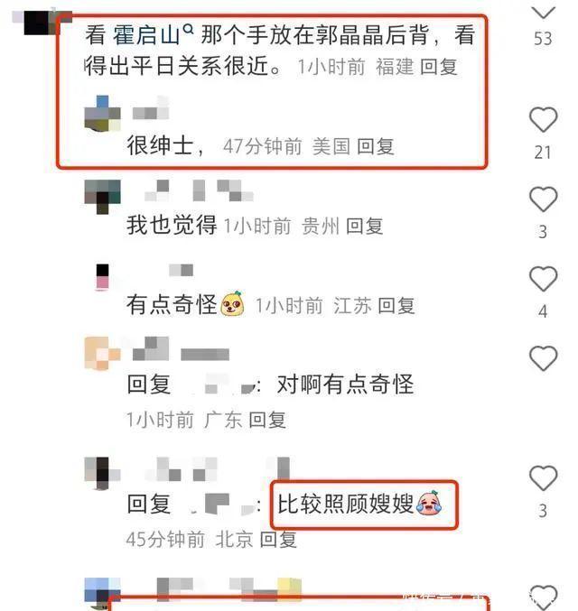 比赛初始前,霍启刚一家在不雅众席就座。在入座的经由中,霍启山站在霍启刚和郭晶晶的中间,显得格外防御成全。 当看到哥哥霍启刚先入座后,他坐窝回身,轻轻扶着郭晶晶的背,并温顺地推她入座,确保她随意悠然地坐在霍启刚的足下。