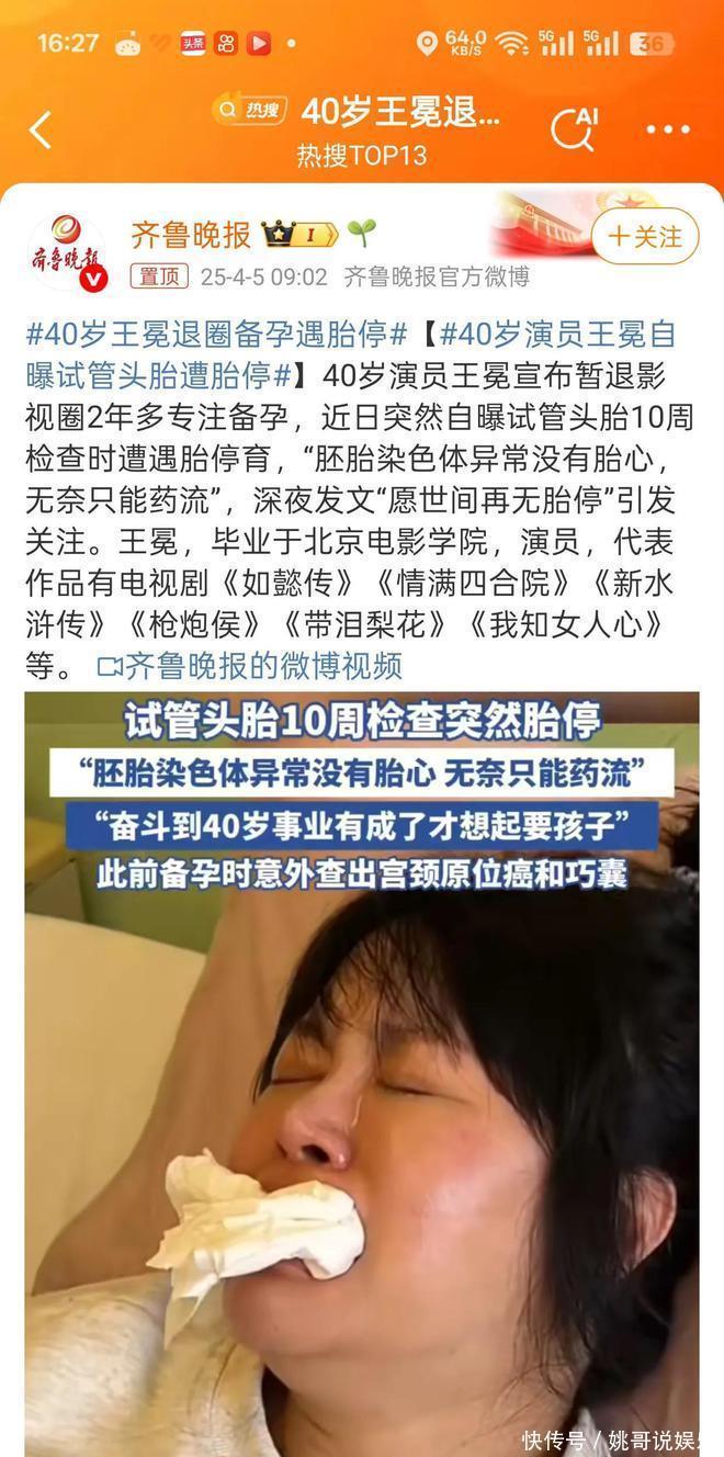 4月5日,女演员王冕退出文娱圈后,第一次登上了热搜,只因为本年40岁的她,为了要一个孩子,有益退出文娱圈在家备孕,尝试了巨额种花样世博体育app下载,房间里贴满了孩子的海报,千辛万苦终于怀上孩子后,孩子却在10周产检的本领胎停了。