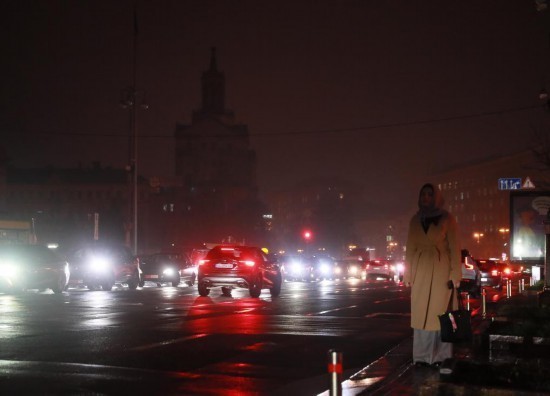 11月20日,乌克兰王人门基辅主要街说念的照明步调出现大面积停电,夜色中市民在路边等车。新华社记者李东旭摄