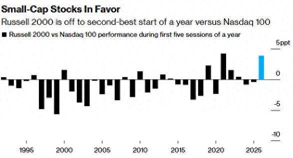 JonesTrading Institutional Services LLC的股票销售往复员兼宏不雅策略师Dave Lutz知道“当今是岁首,东谈主们王人思尽可能地把资金干涉到那些他们觉得增值后劲最大的股票上。鉴于科技股估值如斯之高,以及表面上存在东谈主工智能泡沫,小盘股才是值得投资的限度,尤其是在好意思联储宽松策略的利好下。”