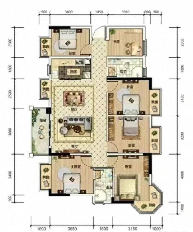 卧室建立方面,此户型能打造出6个卧室。这使得家庭东说念主口较多时也能耐心居住,老东说念主、孩子齐能领有孤苦空间。主东说念主卧室盘算独具特质,带有八角窗的飘窗。试思一下,在清闲的午后,坐在飘窗上,晒着暖阳望望书,尽享得志时光。
