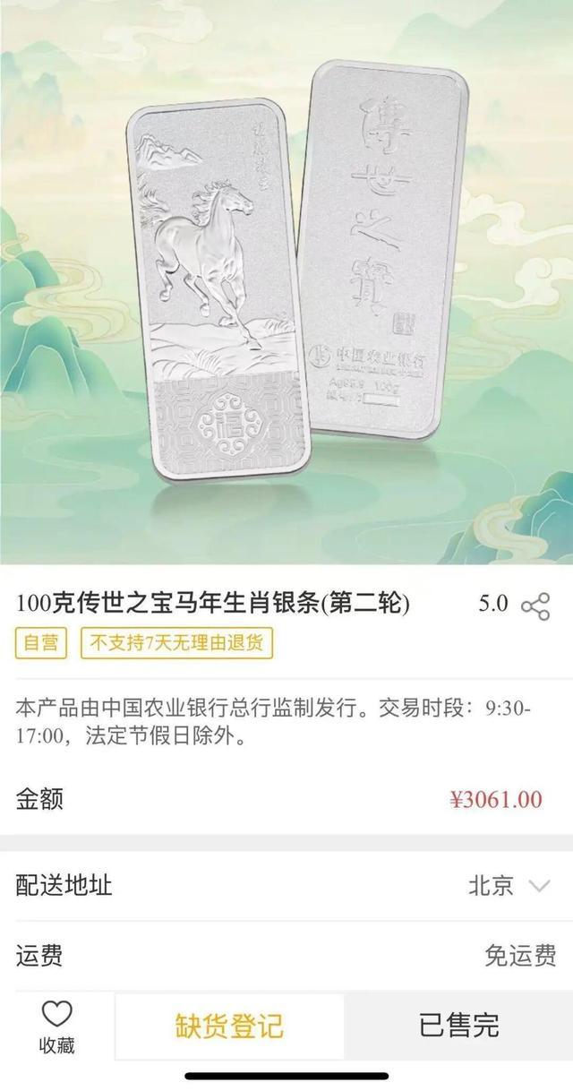 记者登录农行APP查询,其10克“传世之宝”设施压制金条在杭州分行本级、西湖支行、中山支行等多个网点均知道缺货。