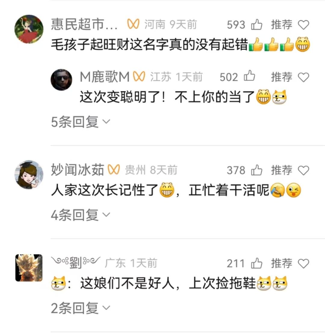 开动还奇怪旺财怎么这样冷淡不睬东谈主,范畴看了辩论区才知谈,旺财仍是被“骗”过一次了。