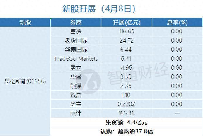智通财经APP获悉世博体育,想格新能(06656)正在招股中。端正4月8日,富途证券、老虎外洋等券商为想格新能借出166.36亿港元,超购逾37.8倍。